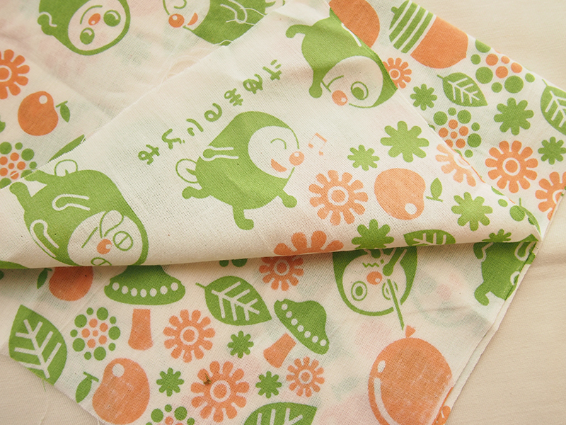 使用イメージに巻いたり畳んだりすることを考えて、1枚絵よりも柄がいいかなと。どうやってもまめたが見えるように!